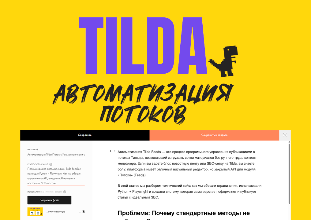 Автоматизация Tilda Feeds — это не магия, а правильное использование современных инструментов. Связка Python + Playwright + AI-генерация контента позволяет одному человеку делать работу целой редакции.